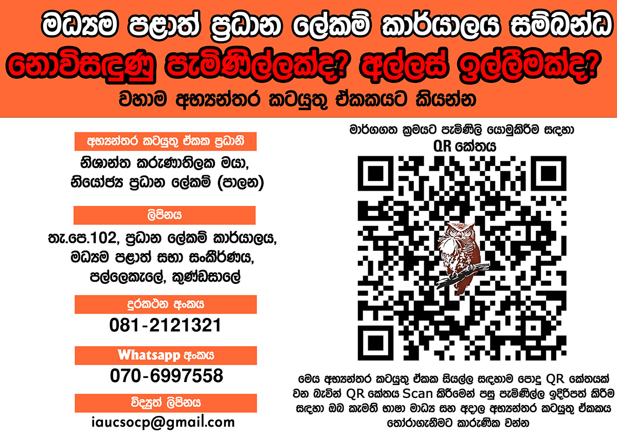 මාර්ගගත ක්රමයට පැමිණිලි යොමුකිරීම සඳහා සබැඳිය